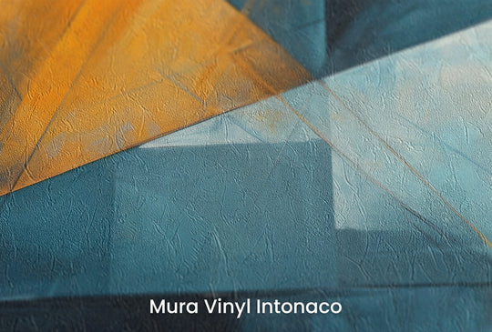 Citrus Slice – geometrische Tapete mit einem orangefarbenen Dreieck auf dunklem Hintergrund