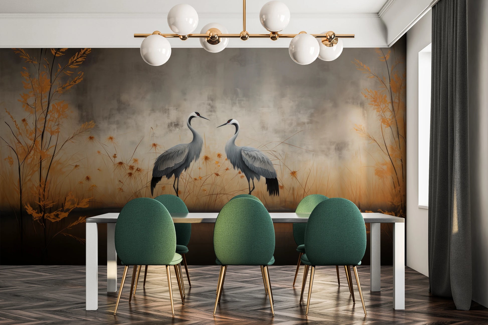 In der Cranes- Kollektion ist jede Fototapete ein Kunstwerk, gemalt mit künstlerischer Präzision und Leidenschaft. In unserem Atelier verwenden wir die modernsten Techniken der klassischen Malerei, kombinieren sie mit den neuesten digitalen Techniken und schaffen Muster, die nicht nur schön, sondern auch einzigartig sind – jede Fototapete ist ein individuell gemaltes Bild, das jedes Interieur belebt und bereichert.