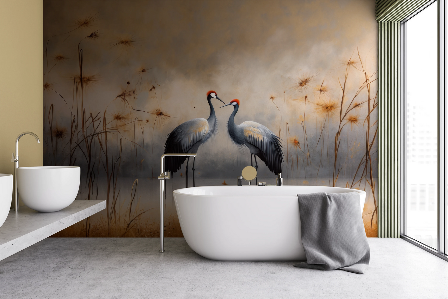 In der Cranes- Kollektion ist jede Fototapete ein Kunstwerk, gemalt mit künstlerischer Präzision und Leidenschaft. In unserem Atelier verwenden wir die modernsten Techniken der klassischen Malerei, kombinieren sie mit den neuesten digitalen Techniken und schaffen Muster, die nicht nur schön, sondern auch einzigartig sind – jede Fototapete ist ein individuell gemaltes Bild, das jedes Interieur belebt und bereichert.