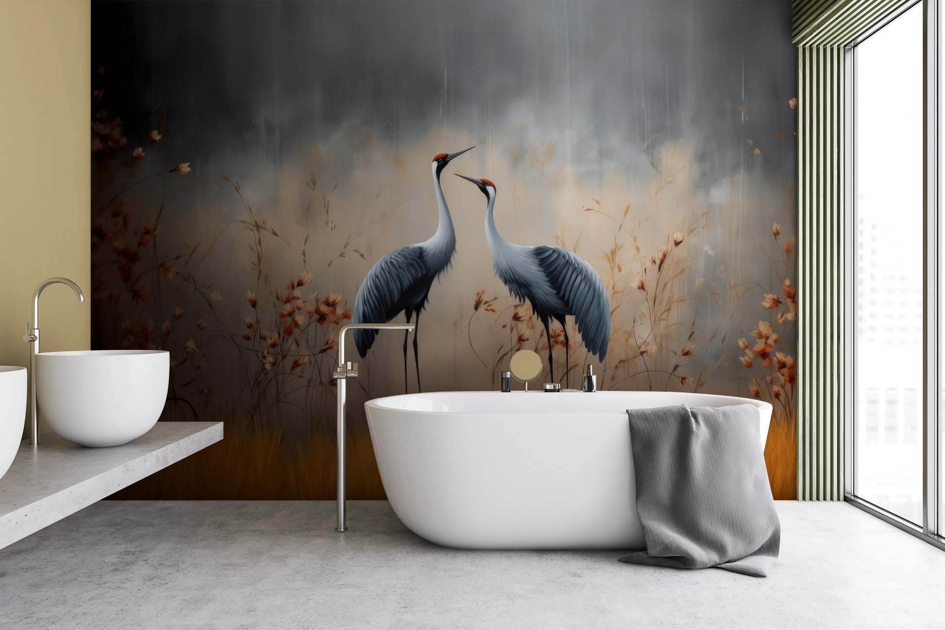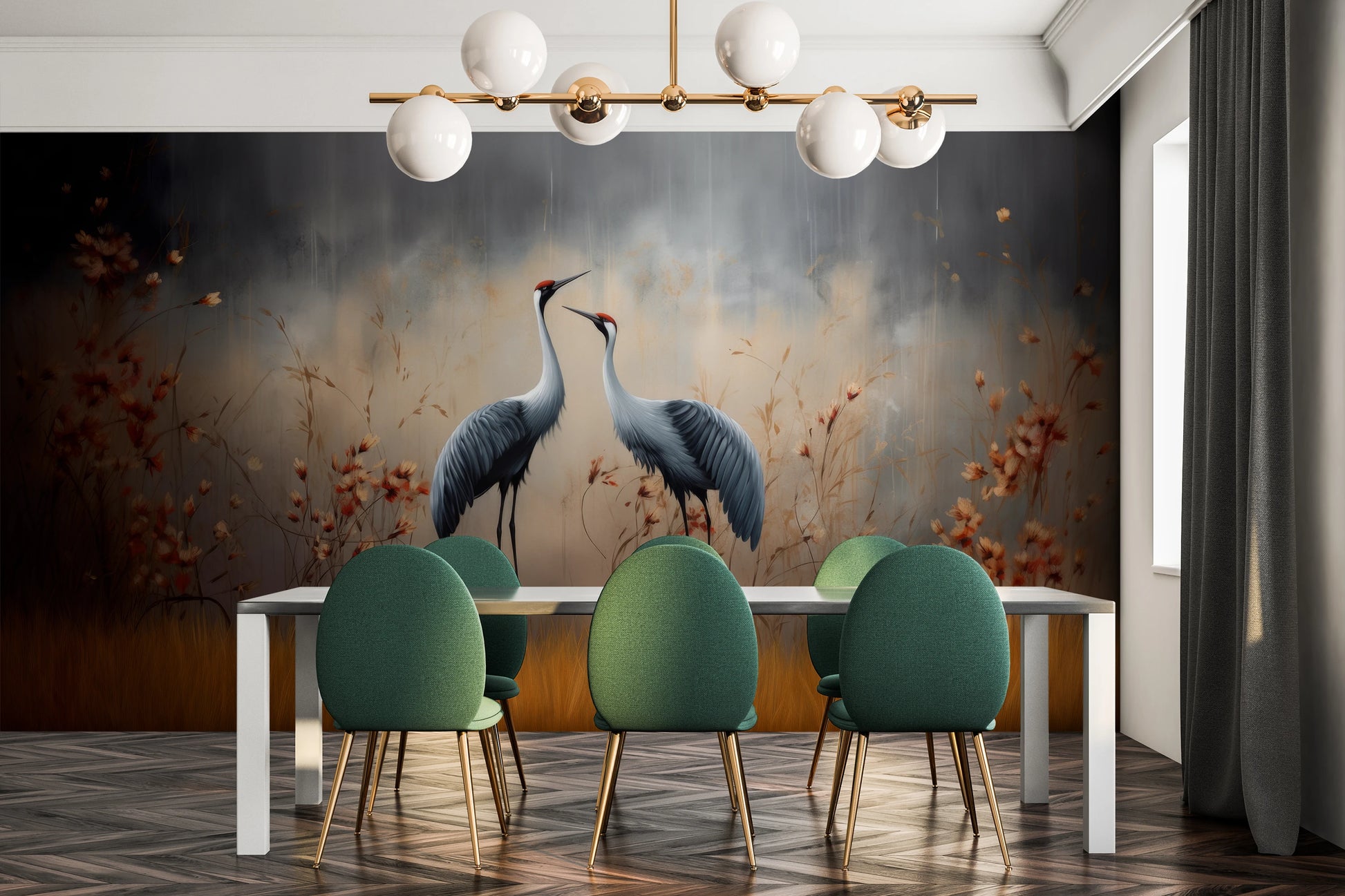 In der Cranes- Kollektion ist jede Fototapete ein Kunstwerk, gemalt mit künstlerischer Präzision und Leidenschaft. In unserem Atelier verwenden wir die modernsten Techniken der klassischen Malerei, kombinieren sie mit den neuesten digitalen Techniken und schaffen Muster, die nicht nur schön, sondern auch einzigartig sind – jede Fototapete ist ein individuell gemaltes Bild, das jedes Interieur belebt und bereichert.