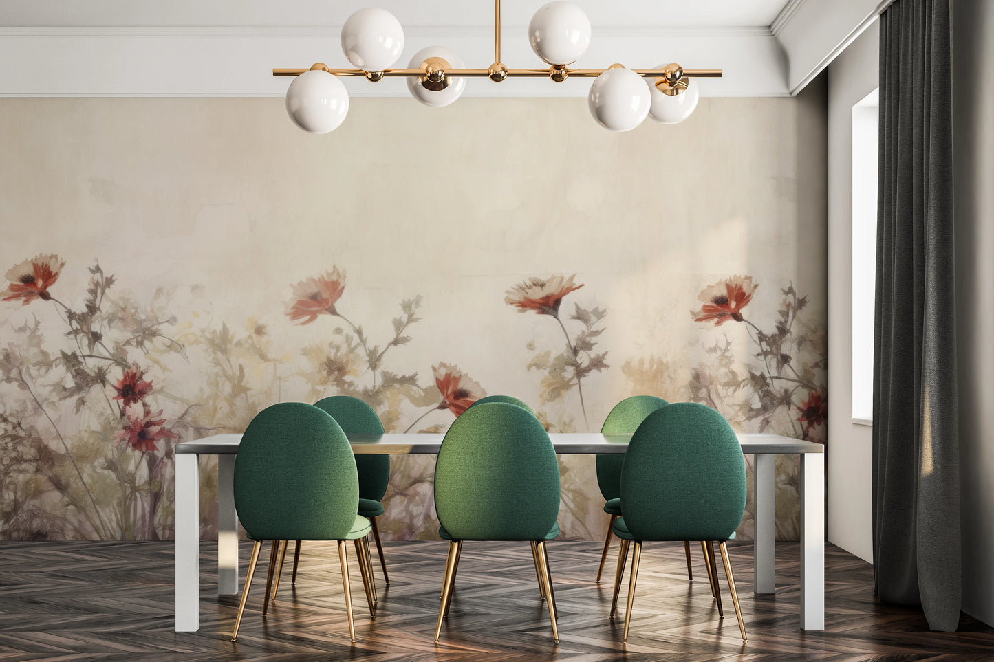 Wild Prairie ist auch für Innenarchitekten empfehlenswert, die einzigartige und originelle Lösungen für Kunden suchen, die Wert auf Individualität und künstlerischen Ausdruck legen. Diese Tapete ist weit mehr als nur eine gewöhnliche Blumentapete – sie ist ein malerisches Kunstwerk, das einzigartige und durchdachte Arrangements perfekt ergänzt. Wenn Sie Räume mit Seele, Geschichte und Emotionen gestalten, ist dieses Muster Ihr idealer Partner, um einen unverwechselbaren Charakter zu schaffen.
