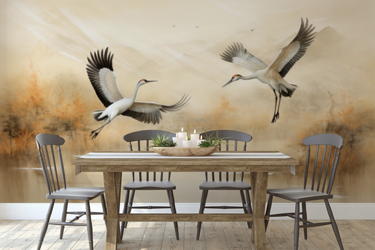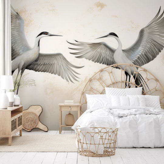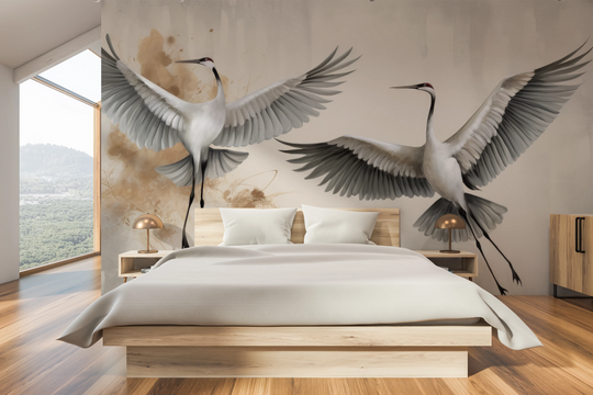 This collection is a visual tribute to the majestic cranes, which are often considered a symbol of happiness and longevity in many cultures, especially in Asia. Artistic works combine subtle elegance and peace, which makes them an ideal choice for interiors looking for a bit of peace and harmony. The paintings show cranes in various poses and settings, from single, focused figures to pairs in a delicate, almost dancing arrangement.
