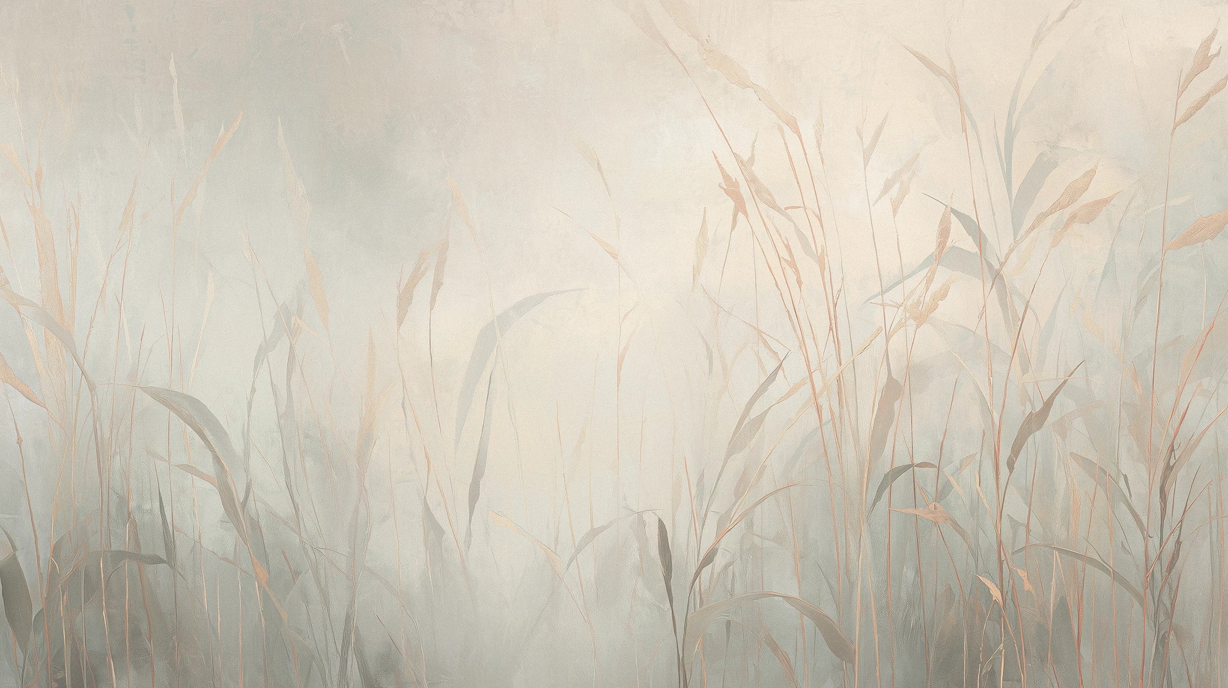 EARTHEN WHISPERS - tapeta z mgielnymi trawami w szarej tonacji