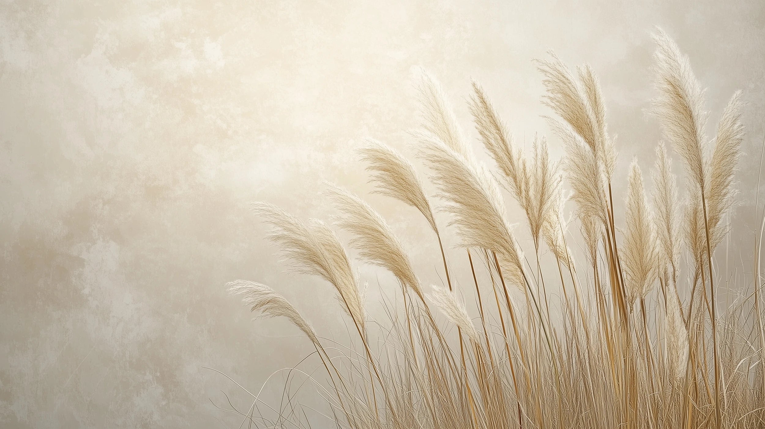 W delikatnej poświacie poranka, miękkie źdźbła traw kołyszą się na wietrze, tworząc hipnotyzujący taniec natury. Ich smukłe sylwetki, skąpane w ciepłych odcieniach sepii, przypominają akwarelowy szkic wykonany subtelną ręką artysty. Ta fototapeta to prawdziwe dzieło sztuki, które wprowadza do wnętrza spokój i harmonię natury. Kompozycja opiera się na minimalistycznym układzie delikatnych traw pampasowych, których puszyste kłosy unoszą się na tle mglistego, beżowego tła. Artystyczna precyzja wykonania sprawia, że każde źdźbło wydaje się być trójwymiarowe, delikatnie wystające ponad powierzchnię ściany. Stonowana paleta barw, oscylująca wokół odcieni écru, beżu i delikatnej sepii, tworzy wyrafinowaną i ponadczasową kompozycję. Mural artystyczny doskonale sprawdzi się w sypialni, gdzie stworzy atmosferę sprzyjającą relaksowi i wyciszeniu. Równie efektownie prezentować się będzie w salonie czy gabinecie, gdzie przemieni przestrzeń w galerię sztuki współczesnej. Wybierając ten wzór, inwestujesz w autentyczne dzieło sztuki, które subtelnością przekazu i mistrzowskim wykonaniem nadaje wnętrzu charakter ekskluzywnego apartamentu. Unikalność tej tapety tkwi w jej zdolności do tworzenia iluzji głębi i ruchu, mimo statycznej formy. To doskonały wybór dla osób ceniących minimalistyczną elegancję i naturalne akcenty we wnętrzach. Delikatność wzoru w połączeniu z jego monumentalnym charakterem sprawia, że ściana staje się głównym punktem pomieszczenia, nie dominując jednak całej przestrzeni.