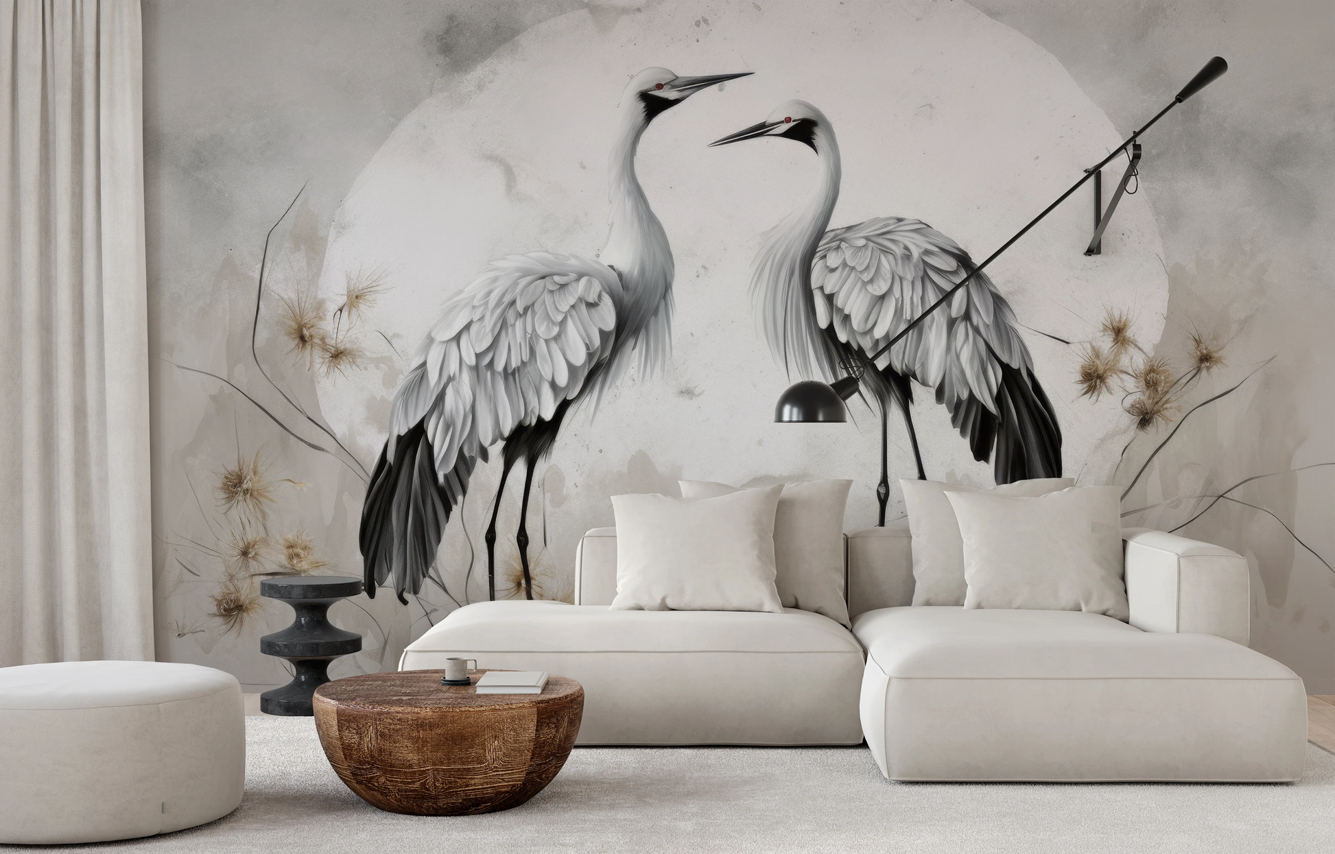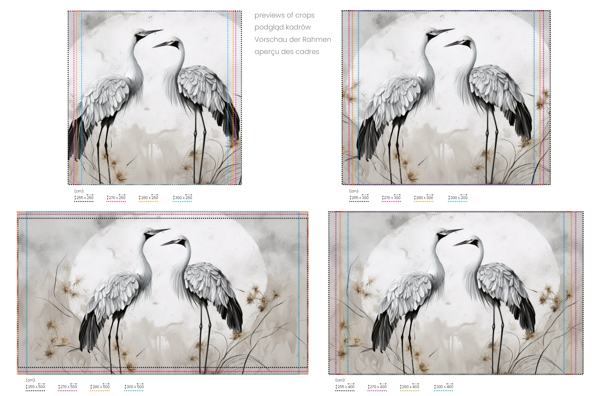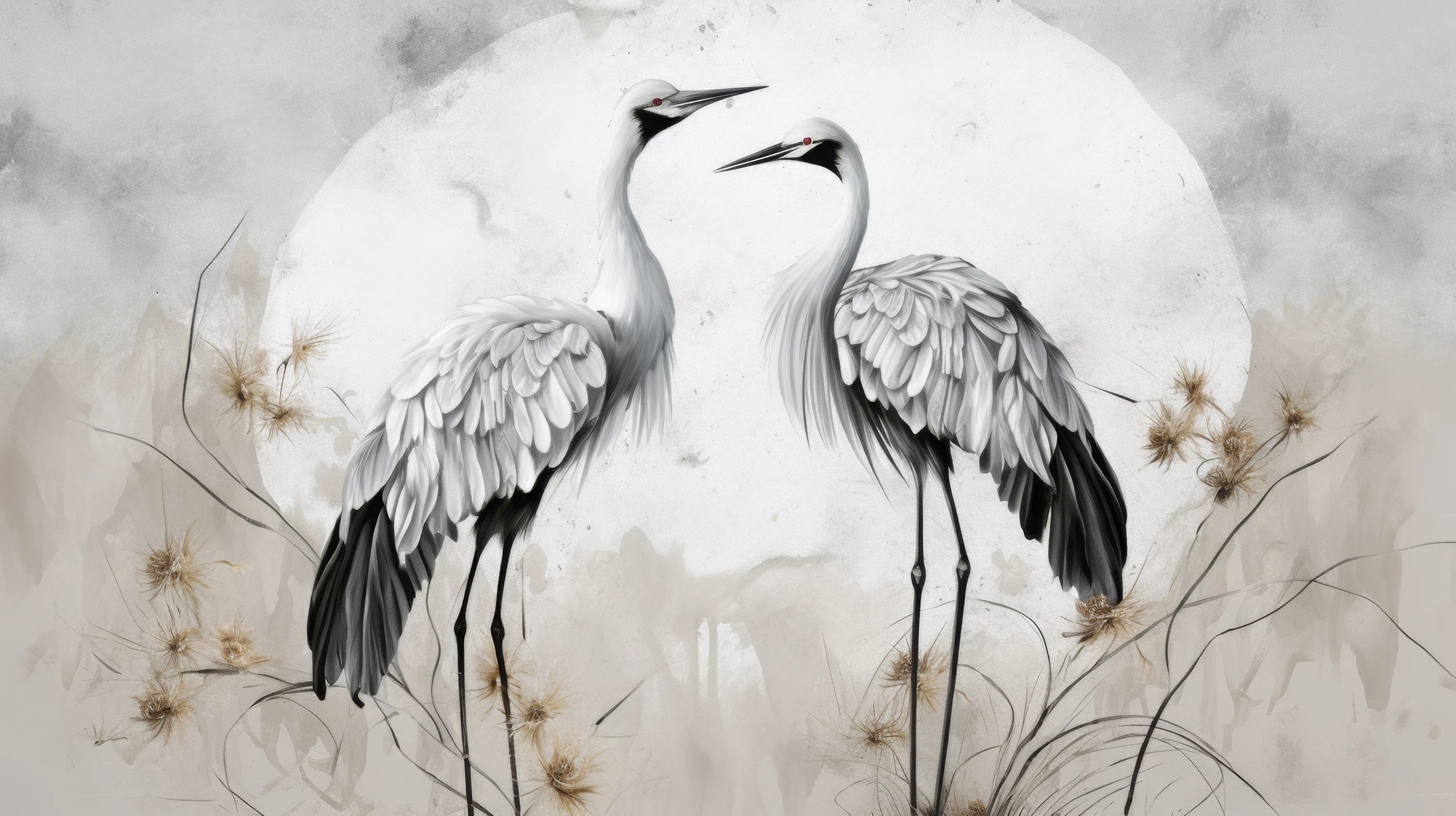 Lunar Duet - An elegant pair of cranes in a love pose, with a background depicting a delicate moon. This pattern is a symbol of peace and love, perfect for creating a romantic atmosphere.