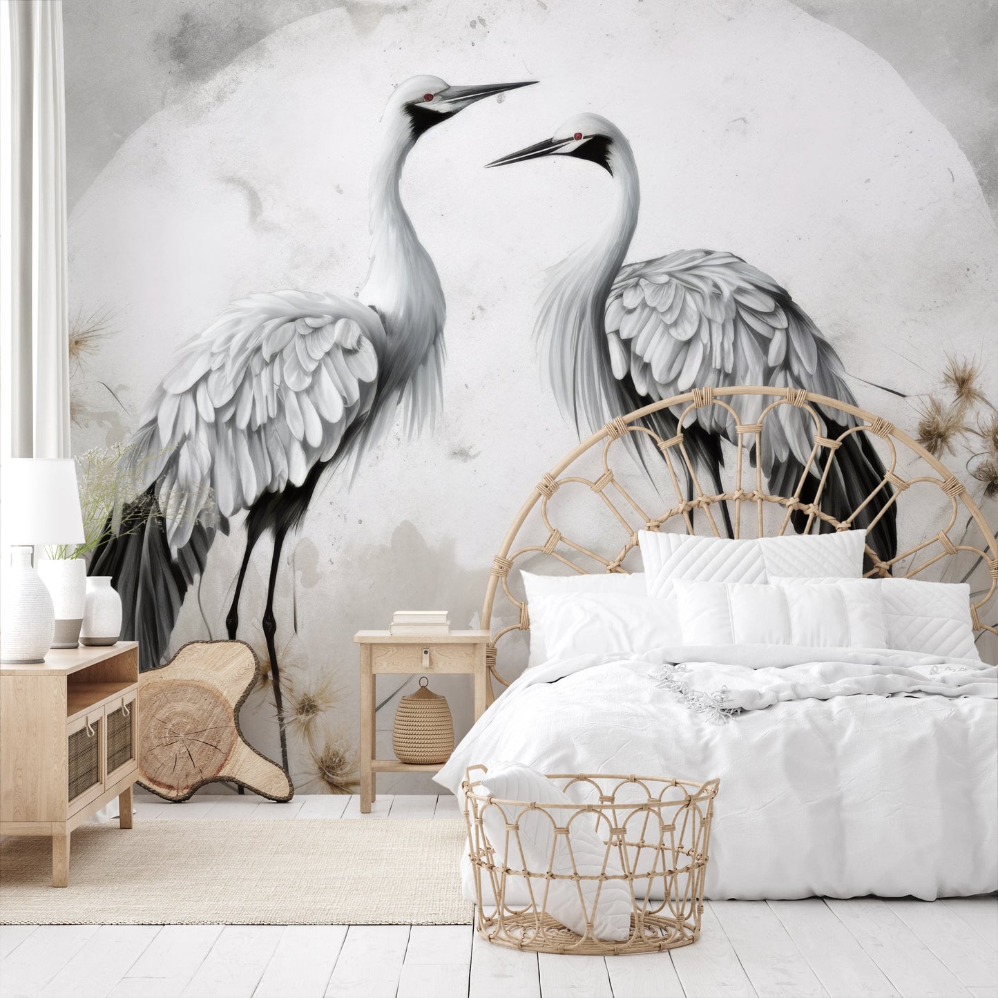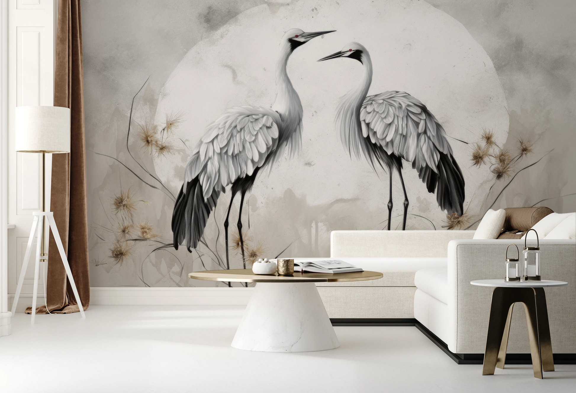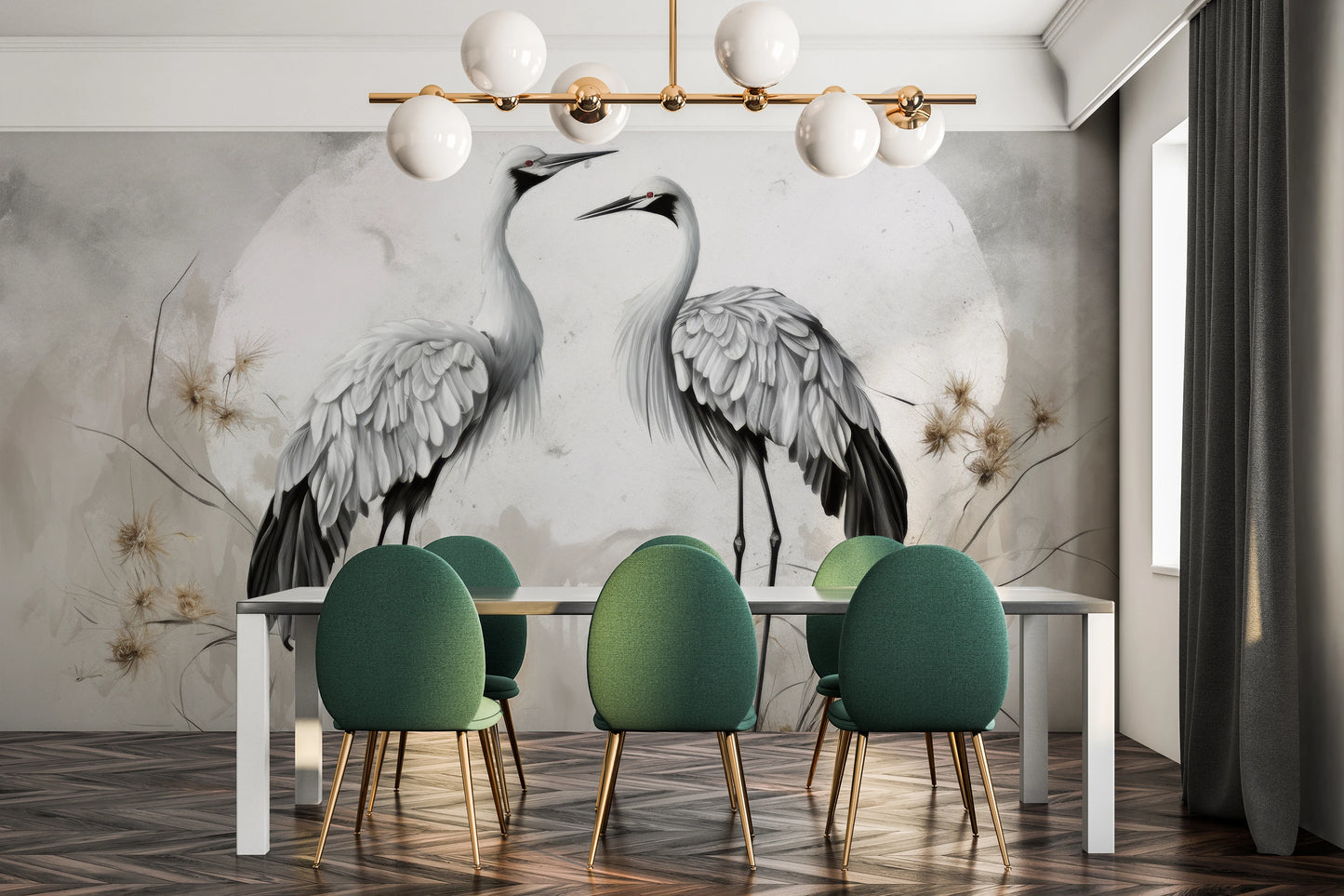 Lunar Duet - An elegant pair of cranes in a love pose, with a background depicting a delicate moon. This pattern is a symbol of peace and love, perfect for creating a romantic atmosphere.