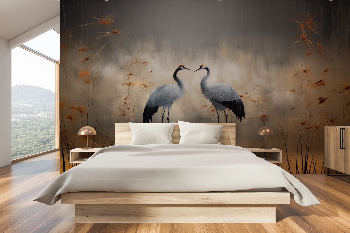Eternal Bond - elegant crane wallpaper in a subdued gray palette