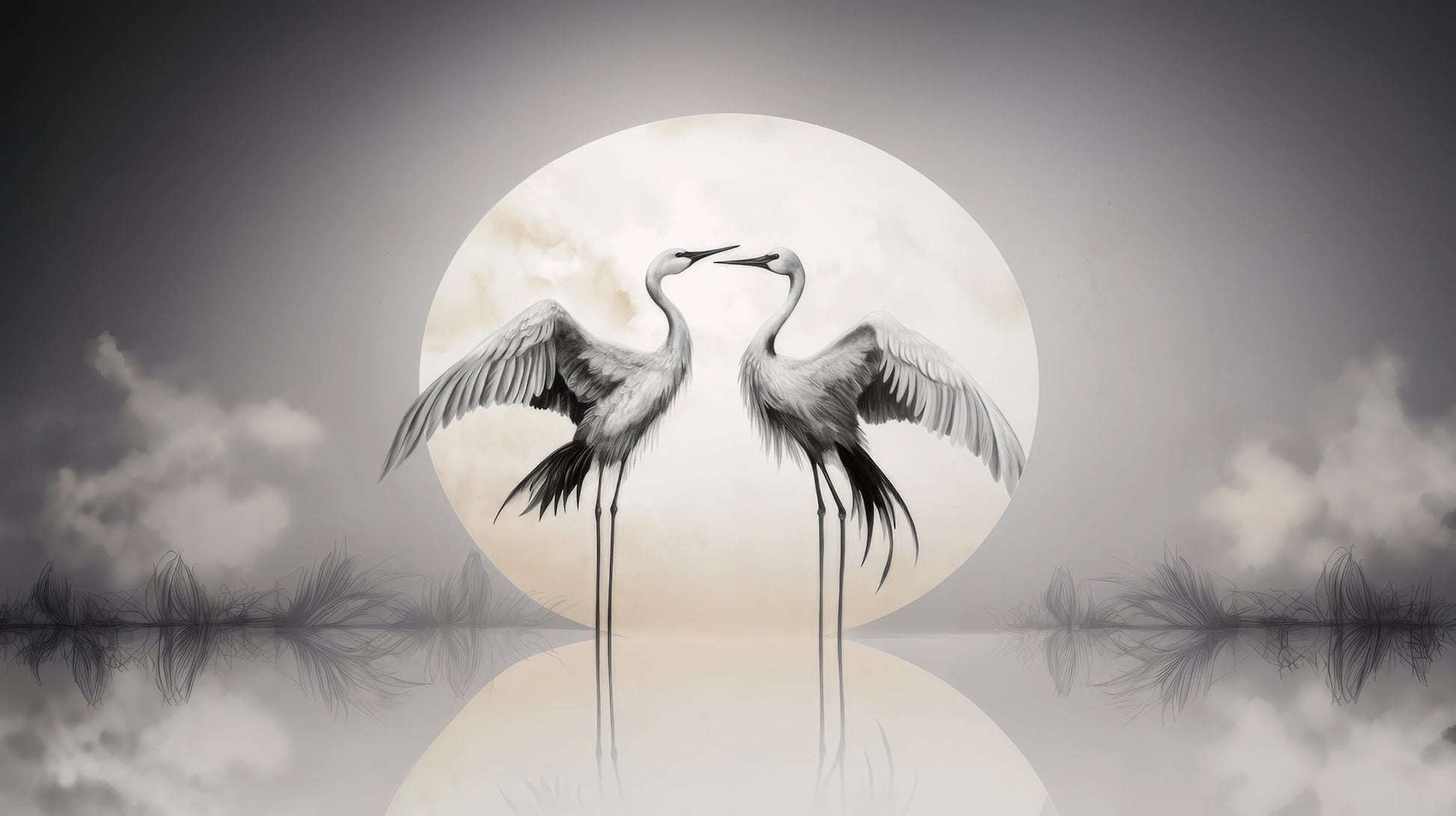 Kolekcja ta jest wizualnym hołdem dla majestatycznych żurawi, które są często uważane za symbol szczęścia i długowieczności w wielu kulturach, zwłaszcza w Azji. Prace artystyczne łączą w sobie subtelną elegancję i spokój, co czyni je idealnym wyborem dla wnętrz poszukujących odrobiny spokoju i harmonii. Obrazy przedstawiają żurawie w różnych pozach i ustawieniach, od pojedynczych, skupionych postaci po pary w delikatnym, prawie tanecznym ułożeniu.