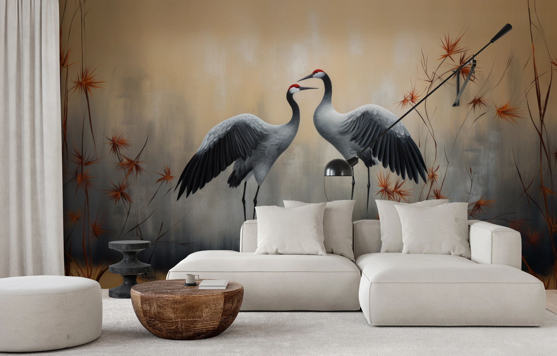 Kolekcja ta jest wizualnym hołdem dla majestatycznych żurawi, które są często uważane za symbol szczęścia i długowieczności w wielu kulturach, zwłaszcza w Azji. Prace artystyczne łączą w sobie subtelną elegancję i spokój, co czyni je idealnym wyborem dla wnętrz poszukujących odrobiny spokoju i harmonii. Obrazy przedstawiają żurawie w różnych pozach i ustawieniach, od pojedynczych, skupionych postaci po pary w delikatnym, prawie tanecznym ułożeniu.
