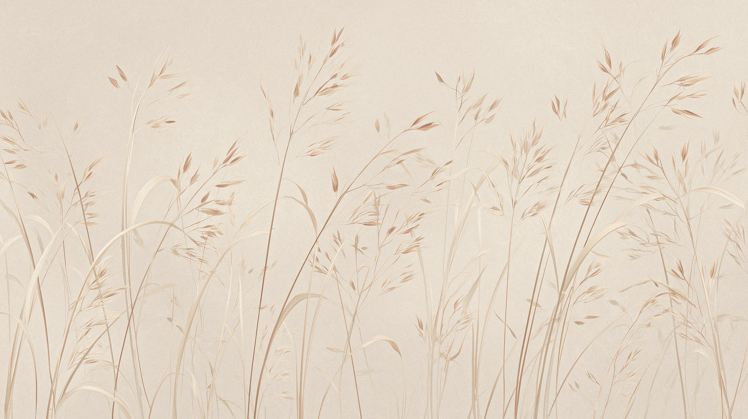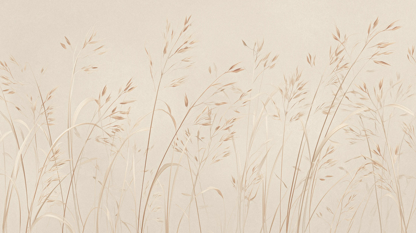 WHISPERING STEMS - tapeta z delikatnymi źdźbłami trawy w beżowej tonacji