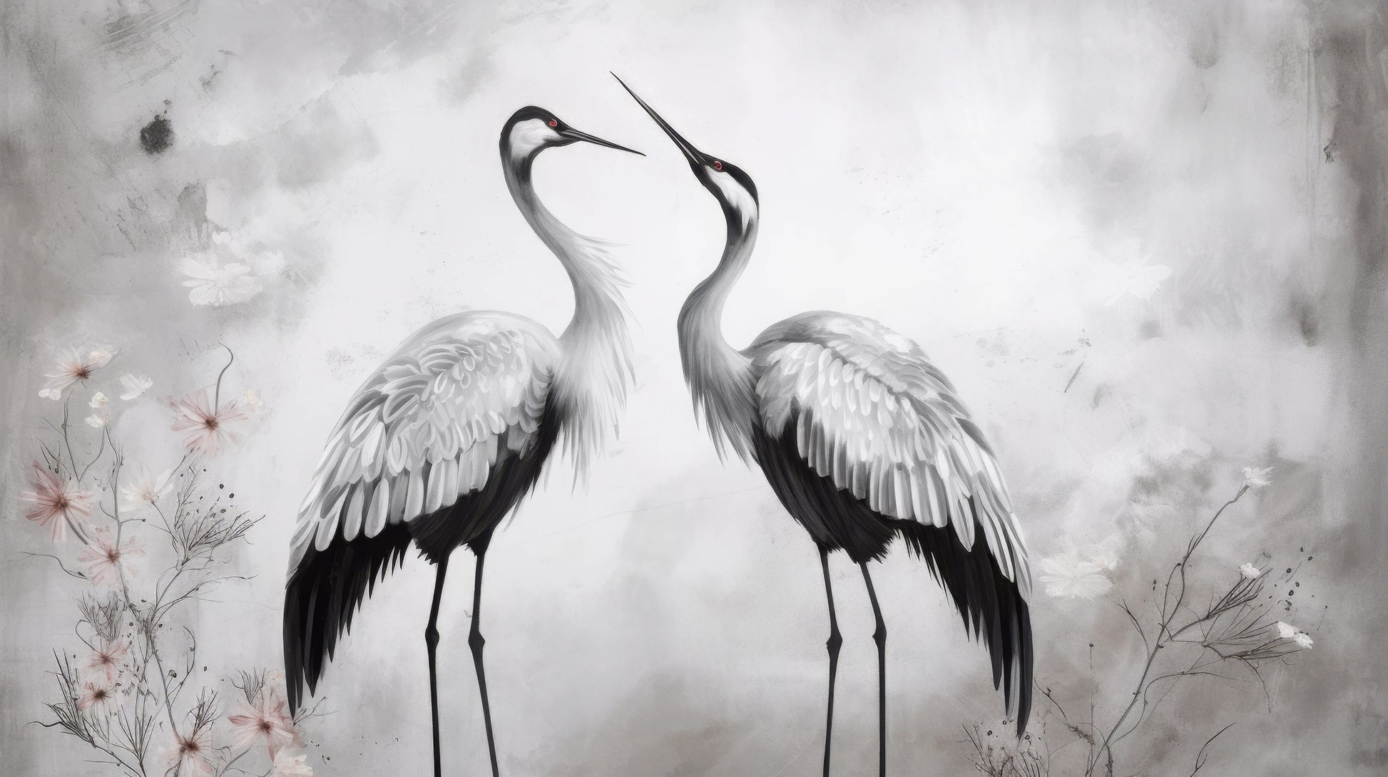 Kolekcja ta jest wizualnym hołdem dla majestatycznych żurawi, które są często uważane za symbol szczęścia i długowieczności w wielu kulturach, zwłaszcza w Azji. Prace artystyczne łączą w sobie subtelną elegancję i spokój, co czyni je idealnym wyborem dla wnętrz poszukujących odrobiny spokoju i harmonii. Obrazy przedstawiają żurawie w różnych pozach i ustawieniach, od pojedynczych, skupionych postaci po pary w delikatnym, prawie tanecznym ułożeniu.