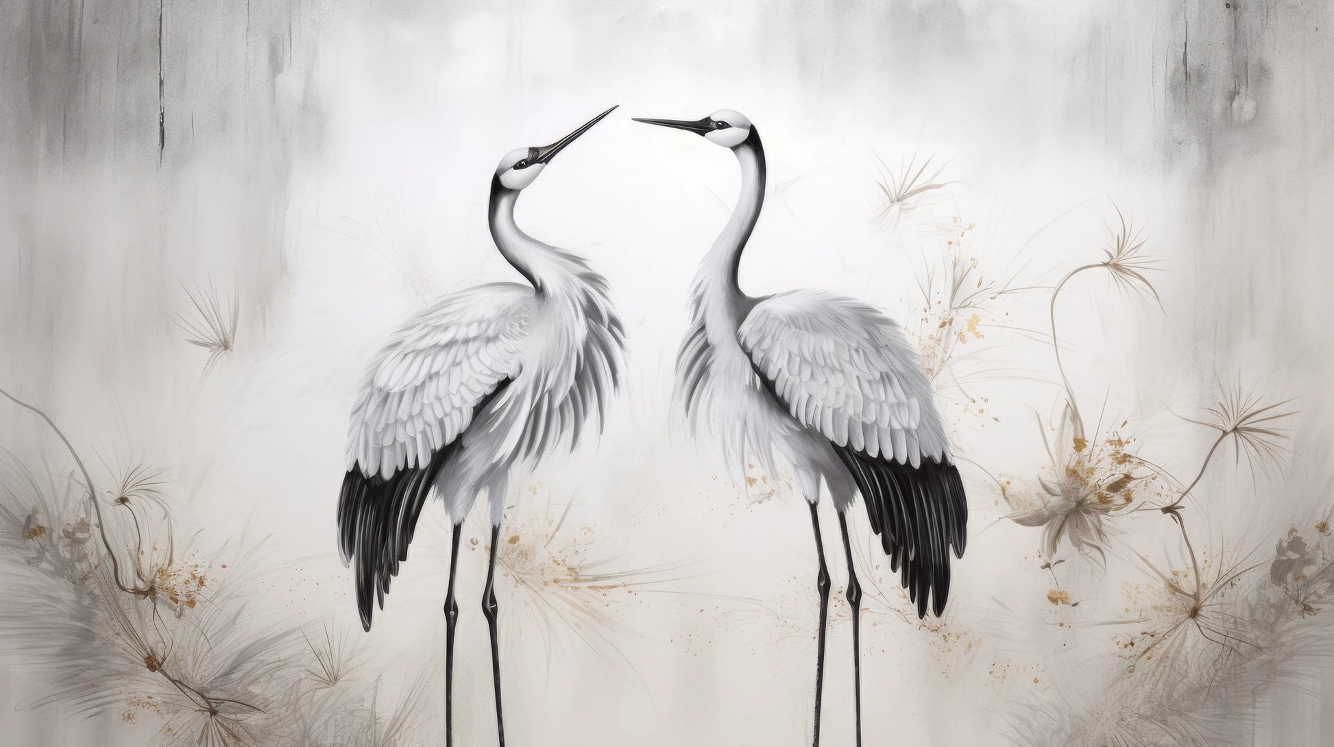 Kolekcja ta jest wizualnym hołdem dla majestatycznych żurawi, które są często uważane za symbol szczęścia i długowieczności w wielu kulturach, zwłaszcza w Azji. Prace artystyczne łączą w sobie subtelną elegancję i spokój, co czyni je idealnym wyborem dla wnętrz poszukujących odrobiny spokoju i harmonii. Obrazy przedstawiają żurawie w różnych pozach i ustawieniach, od pojedynczych, skupionych postaci po pary w delikatnym, prawie tanecznym ułożeniu.
